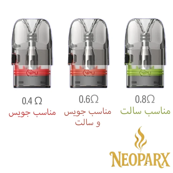 مقاومت های موجود : 0/15 ، 0/2 ، 0/3 ، 0/4 ، 0/6 ، 0/8 ، 1/2مقاومت 0/15 (60 تا 75 وات) مناسب جویس / مقاومت 0/2 (45 تا 60 وات) مناسب جویس / مقاومت 0/3 (32 تا 45 وات) مناسب جویس / مقاومت 0/4 (26 تا 32 ولت) مناسب جویس / مقاومت 0/6 (20 تا 26 وات) مناسب سالت و جویس / مقاومت 0/8 (12 تا 20 وات) مناسب سالت / مقاومت 1/2 (8 تا 12 وات) مناسب سالتسازگاری با دستگاه های : سواگ پی ایکس ۸۰ / جی تی ایکس گو ۴۰ / جی تی ایکس گو ۸۰ / لوکس ۸۰
