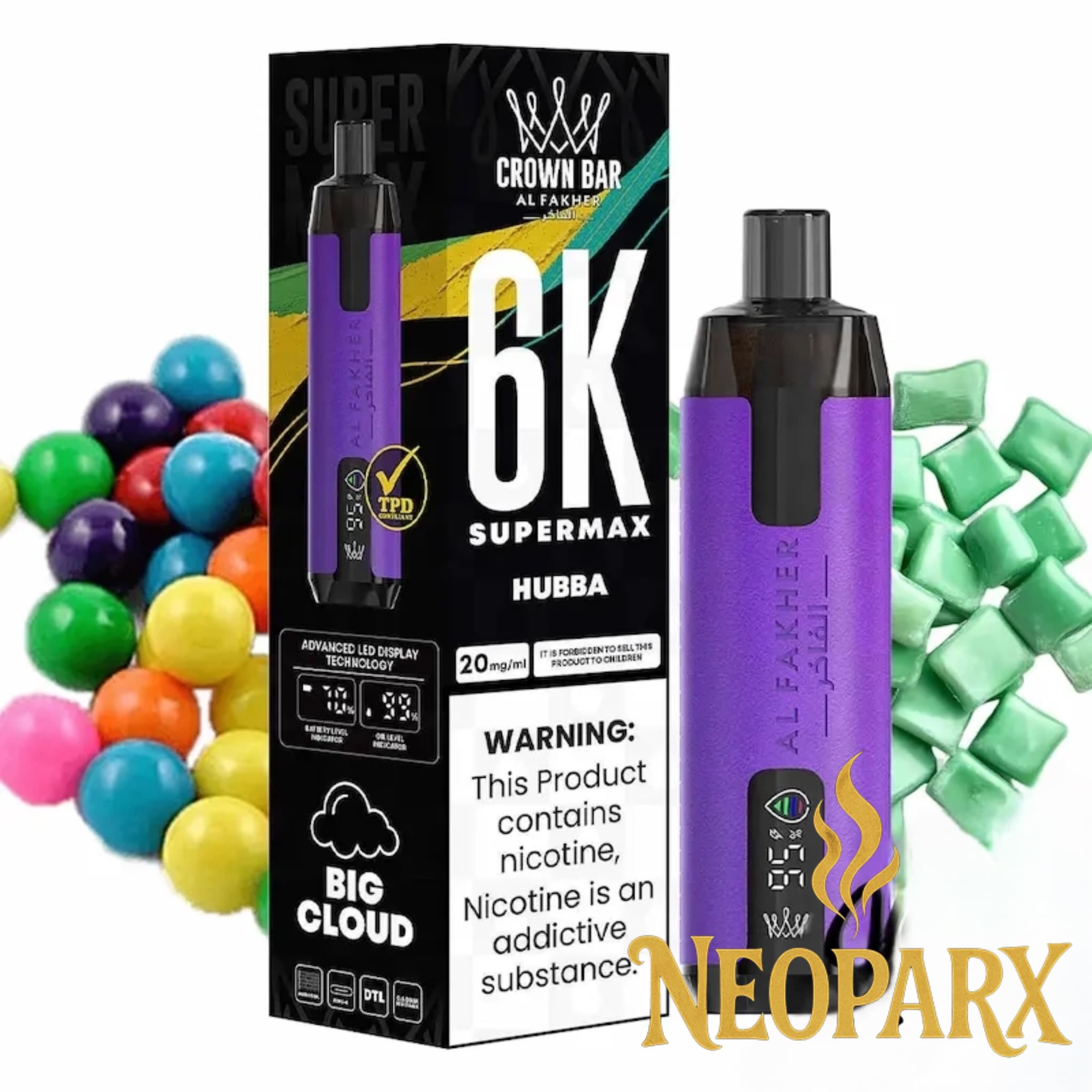 پاد | ویپ یکبار مصرف 6000 پاف آدامس بادکنکی الفاخر(دود زیاد) Alfakher Hubba 6000 Puff