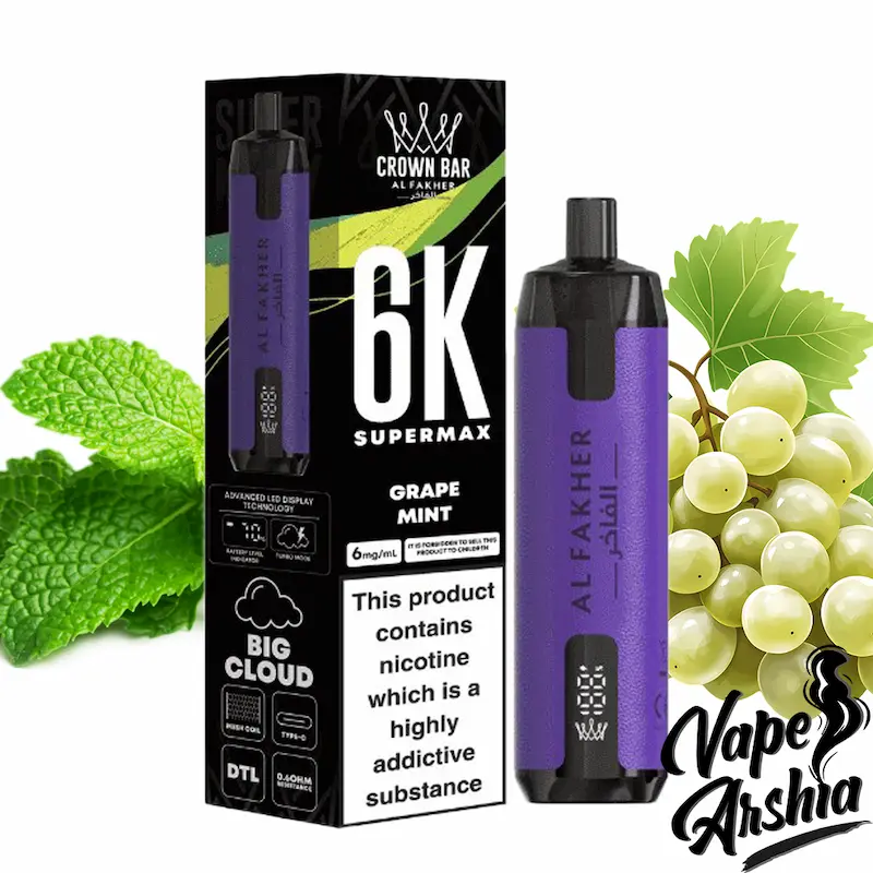 پاد | ویپ یکبار مصرف 6000 پاف انگور نعنا الفاخر(دود زیاد) Alfakher Grape mint 6000 Puff
