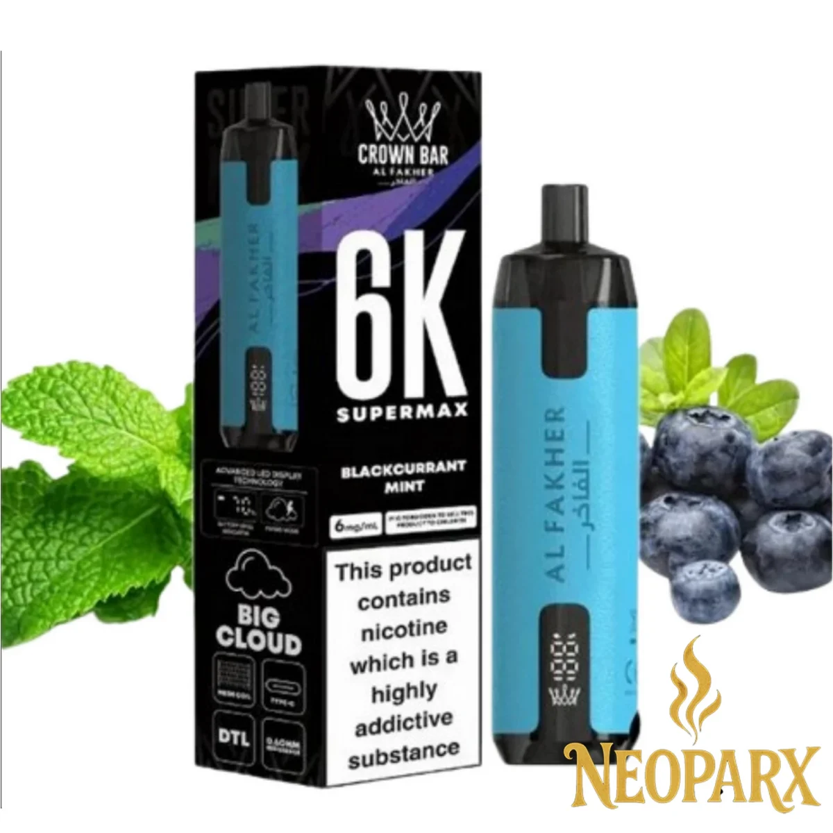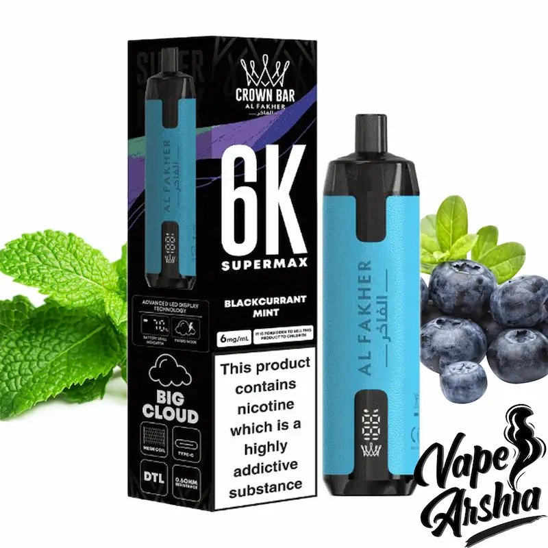 پاد | ویپ یکبار مصرف 6000 پاف توت سیاه نعنا الفاخر(دود زیاد) Alfakher Blackcurrant Mint 6000 Puff
