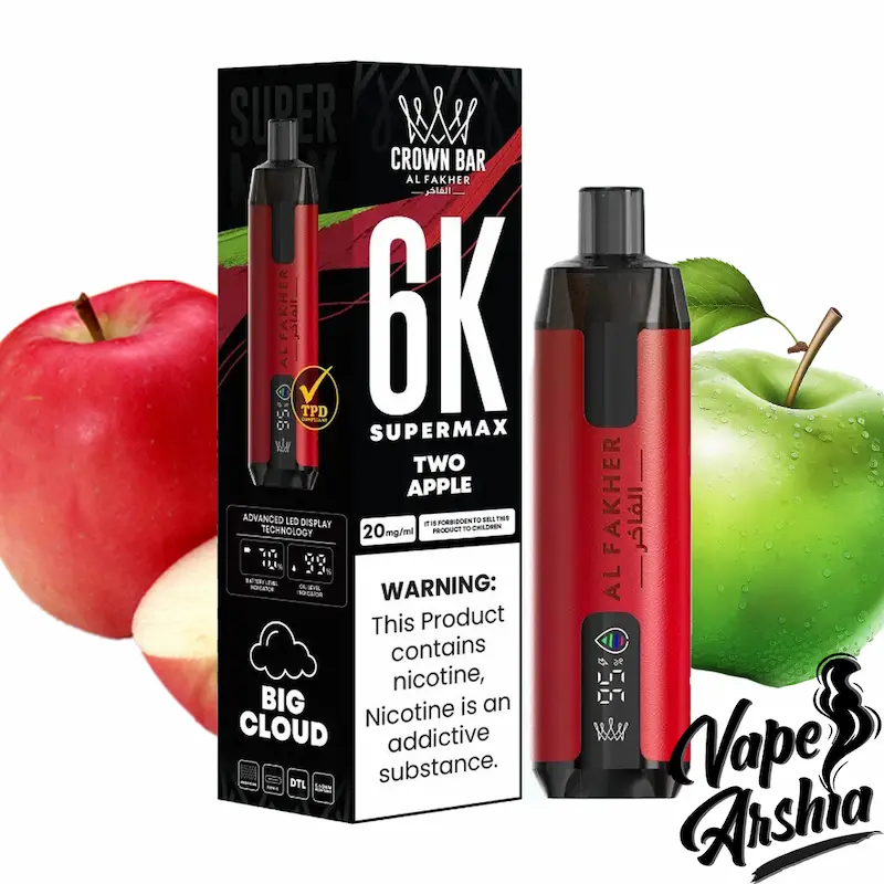 پاد | ویپ یکبار مصرف 6000 پاف دو سیب الفاخر(دود زیاد) Alfakher Two Apple 6000 Puff