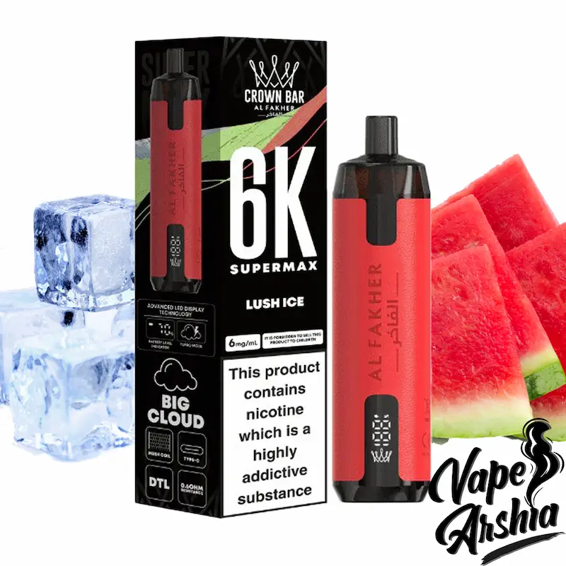 پاد | ویپ یکبار مصرف 6000 پاف هندوانه یخ الفاخر(دود زیاد) Alfakher Lush ice 6000 Puff